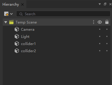 首先在场景中创建两个立方体collider1和collider2(如下图),为它们分别添加一个BoxCollider组件,并将它们的位置分别设置为(0,0,0)和(0,2,0)。然后给collider2再添加一个Rigidbody组件,并勾选使用重力属性。最后将脚本挂载在collider1游戏对象上。